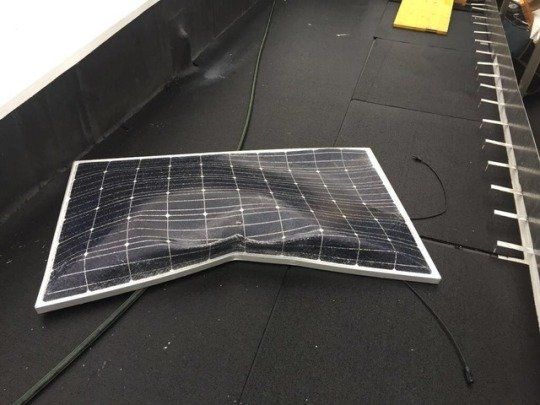 Ein kräftiger Sturm hat Module einer noch im Aufbau befindlichen PV-Anlage aus ihren Verankerungen gerissen und über das fertiggestellte Flachdach geschleudert. Die mechanisch befestigte und frei liegende Abdichtung aus EPDM wurde an mehreren Stellen durch die Module und die durch den Wind gleichfalls „verblasenen“ Betonsteine (Auflast) verletzt.